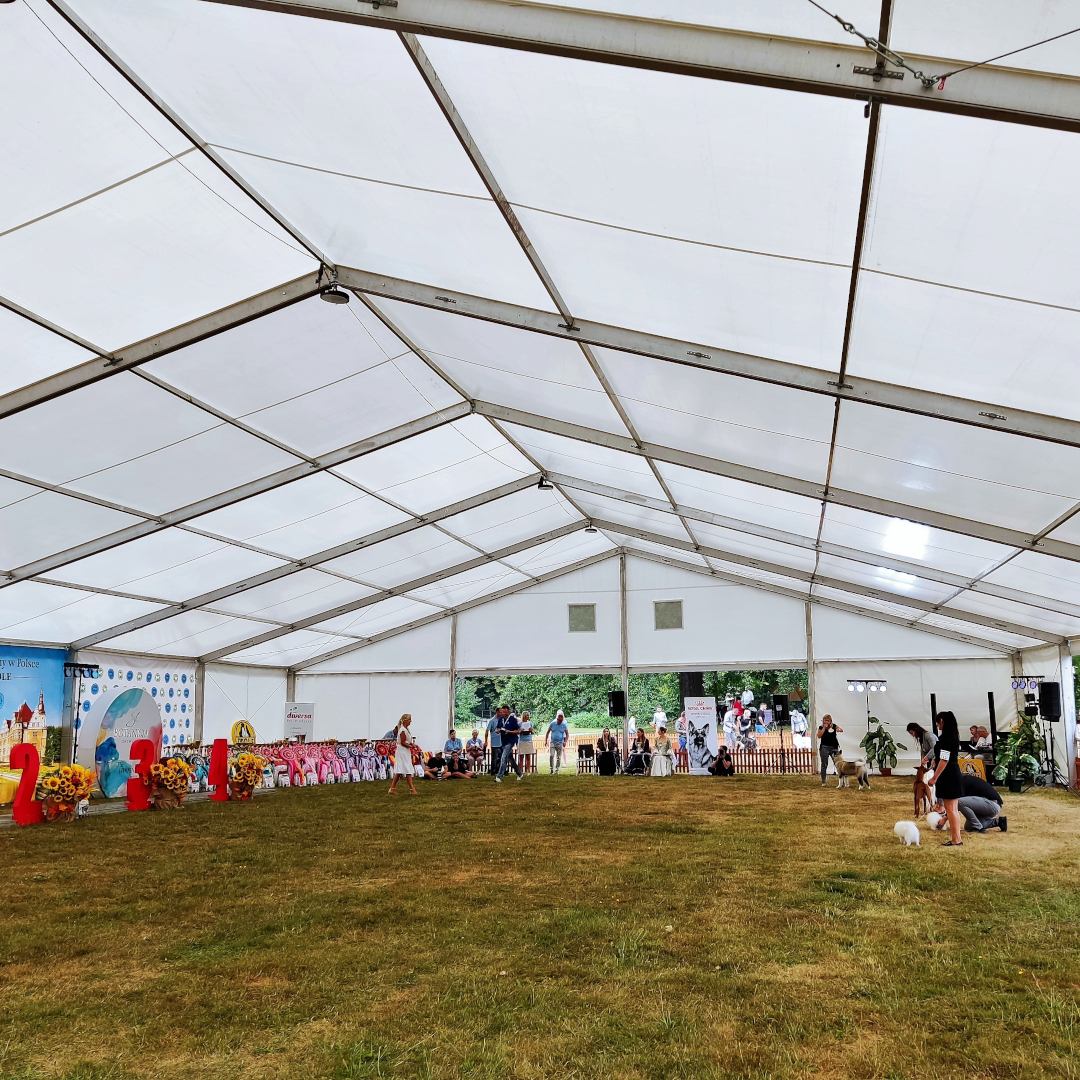 Wystawy odbyły się pod pięknym zamkiem w Mosznej. Mimo niesprzyjającej, deszczowej aury psiaków przybyło sporo.