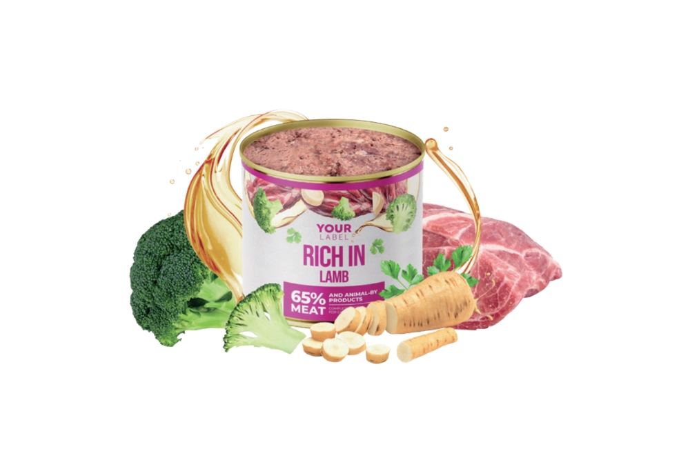 Composition: meat and animal-by products 65 % (including lamb 14 %), meat broth 28 %, broccoli 2 %, parsley root 2 %, minerals, oils and fats (including salmon oil 0.5 %), chondroitin sulfate, glucosamine sulfate