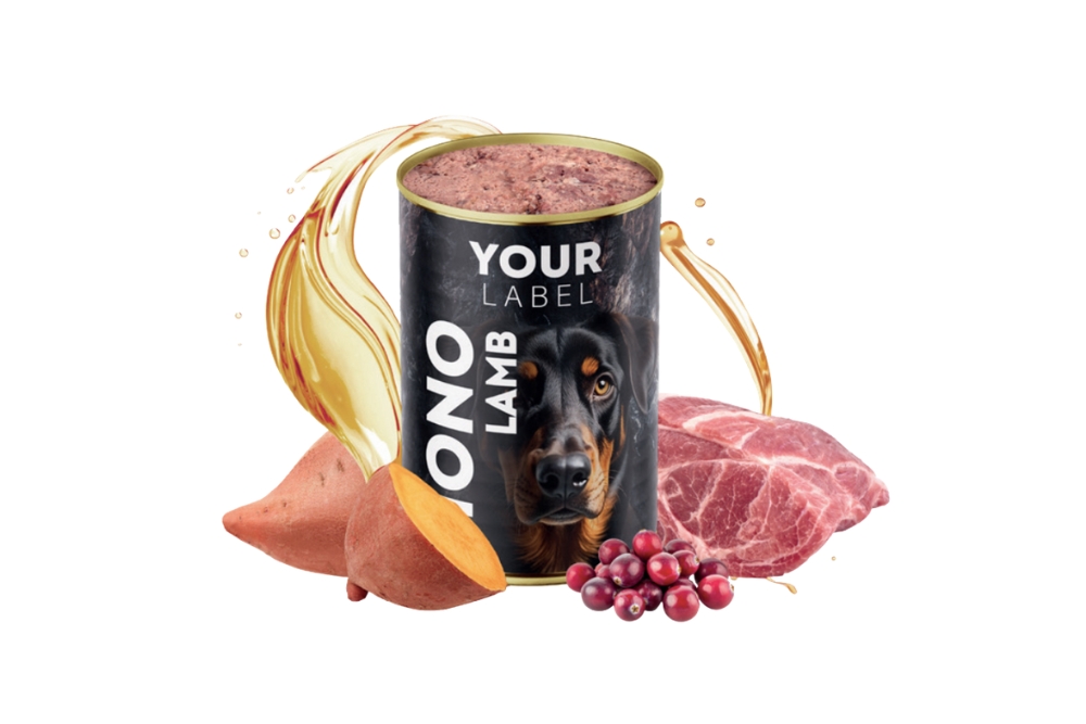 Composition: lamb 65 %, meat broth 28 %, cranberries 2 %, sweet potatoes 2 %, minerals, oils and fats (including salmon oil 0.5 %), chondroitin sulfate, glucosamine sulfate