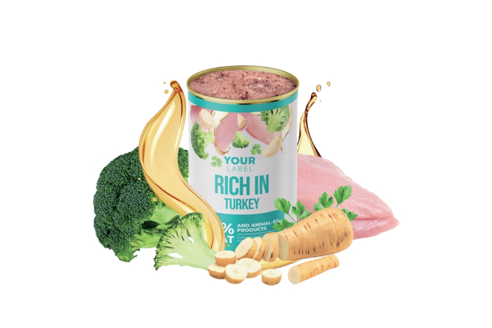 Composition: meat and animal-by products 65 % (including turkey 14 %), meat broth 28 %, broccoli 2 %, parsley root 2 %, minerals, oils and fats (including salmon oil 0.5 %), chondroitin sulfate, glucosamine sulfate