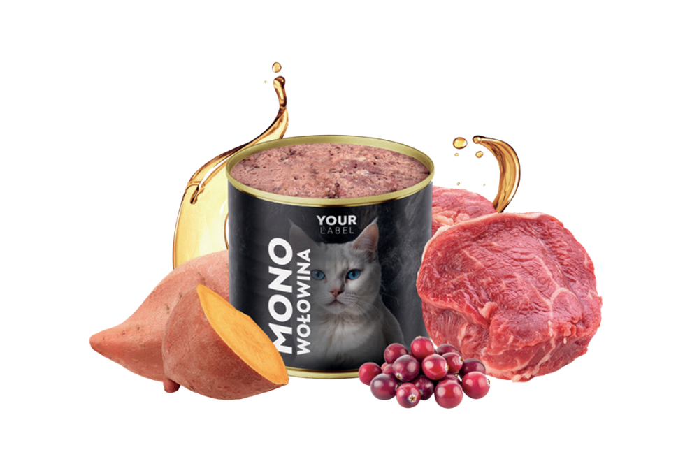 Skład: wołowina 65 %, bulion mięsny 28 %, bataty 2 %, żurawina 2 %, minerały, oleje i tłuszcze (w tym olej z łososia 0,5 %).