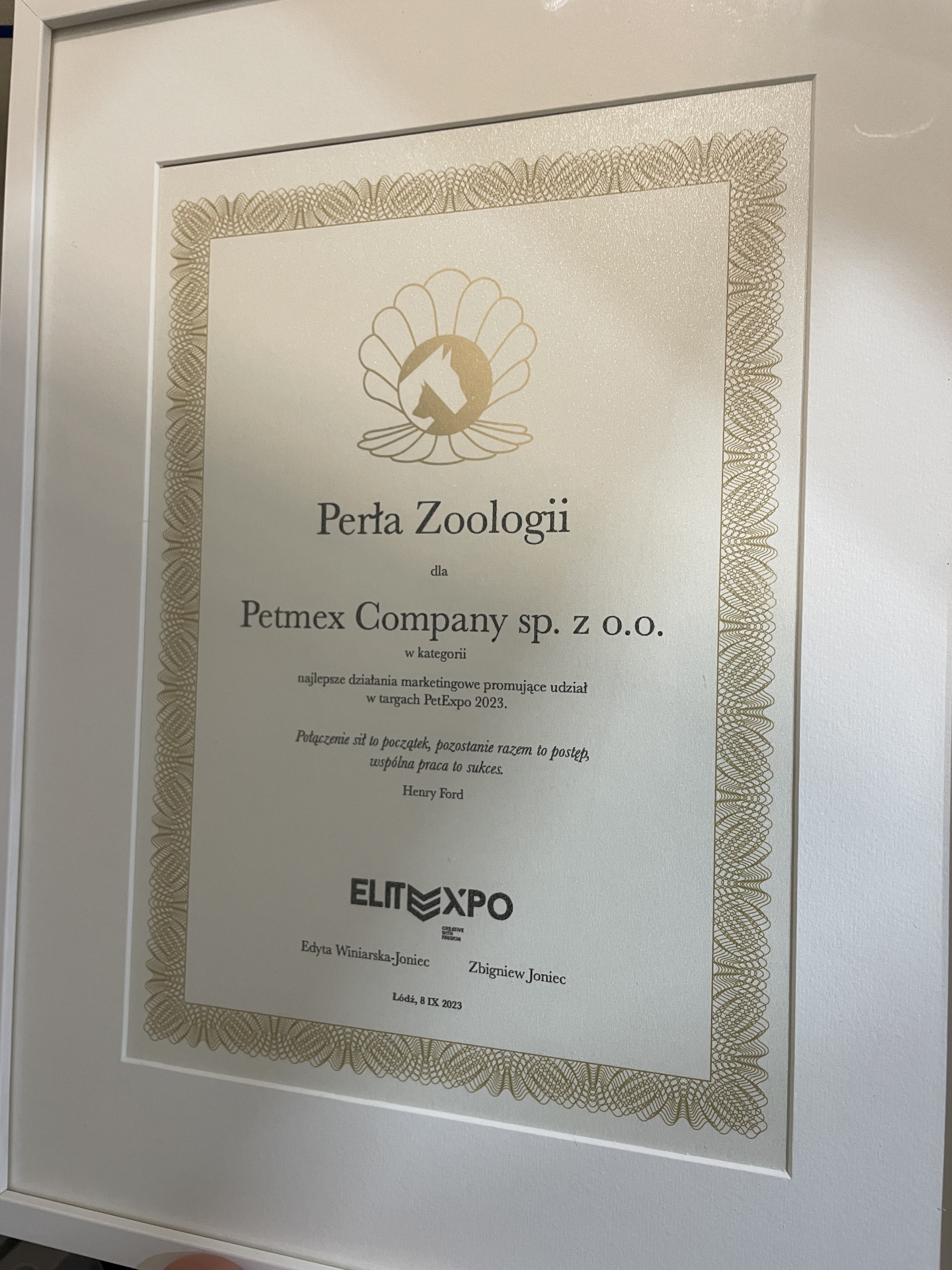 Na szczególną uwagę zasługuje również wyróżnienie, które otrzymał nasz dział marketingu za najlepsze działania marketingowe promujące targi PetExpo 2023.