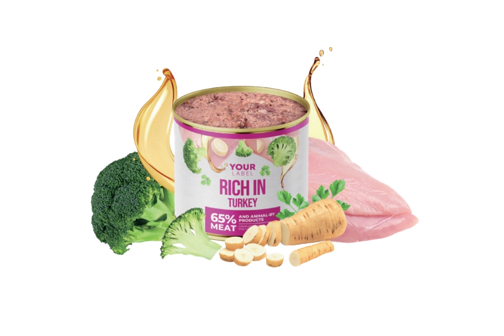 Composition: meat and animal-by products 65 % (including turkey 14 %), meat broth 28 %, broccoli 2 %, parsley root 2 %, minerals, oils and fats (including salmon oil 0.5 %), chondroitin sulfate, glucosamine sulfate