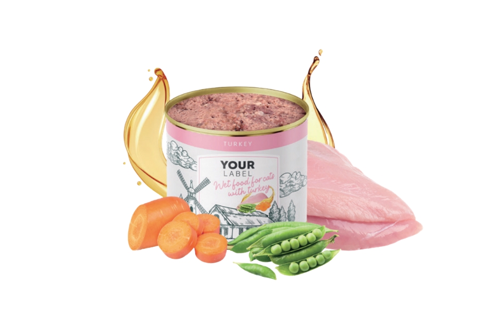 Composition meat and animal-by products 60 % (including turkey 4 %), broccoli 4 %, minerals, oils and fats, thyme 0.1 %. (including salmon oil 0.5 %).
