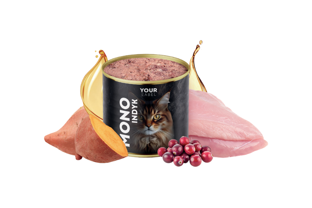 Skład: indyk 65 %, bulion mięsny 28 %, bataty 2 %, żurawina 2 %, minerały, oleje i tłuszcze (w tym olej z łososia 0,5 %), siarczan chondroityny, siarczan glukozaminy.
