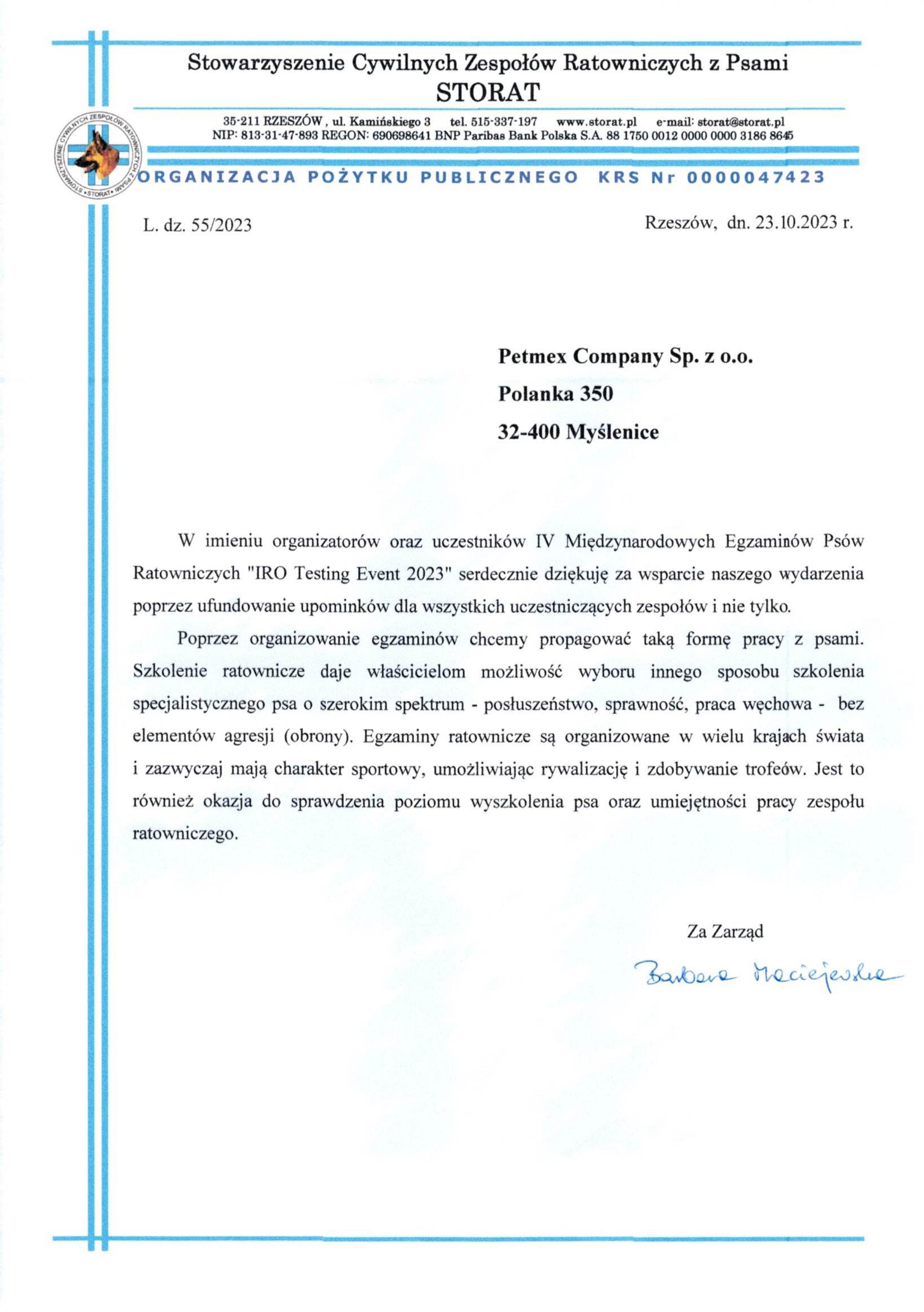 Międzynarodowe Egzaminy Psów Ratowniczych IRO to nie tylko sprawdzian zdolności, ale również wydarzenie kynologiczne, sportowe i społecznościowe. Doświadczeni sędziowie międzynarodowi oceniali każdy zespół w trakcie wymagających konkurencji, gdzie psy ratownicze prezentowały swoje umiejętności. Petmex podarował psim uczestnikom pyszne naturalne gryzaki.