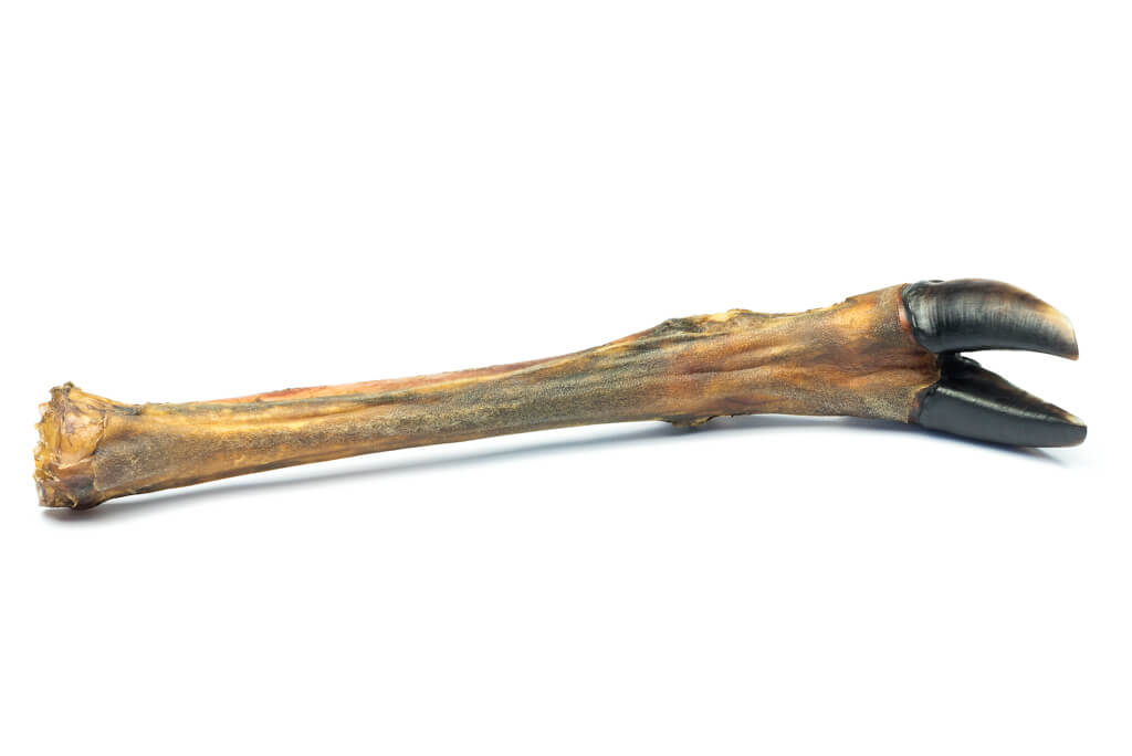 Cała noga jelenia składa się z racicy z kopytkiem, kości otulonej mięsem oraz ścięgien, co czyni ją bardzo wymagającym i absorbującym gryzakiem. Naturalnie występujące w racicy białko i kolagen świetnie wpływają na zdrowie oraz kondycję naszych pupili. Mięso z dziczyzny cechuje niepowtarzalny smak i aromat uwielbiany przez psiaki. Z racji wysokiej twardości ten naturalny gryzak polecany jest psom dorosłym ras średnich oraz dużych.